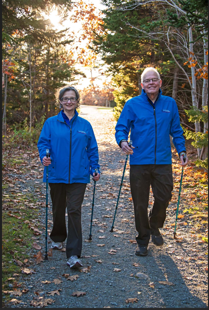 Bill has a background in health and fitness. He was the CEO of the Lung Association of NS for 15 years; prior to that he was Atlantic Area Director of the YMCA for 12 years. He has been involved in Nordic Walking since 2008. Esther has been an avid Nordic Walker since 2011. She demonstrates the proper form of Nordic Walking in the instructional videos.